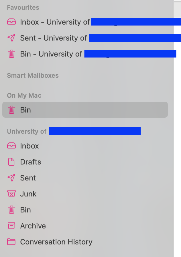 However there seem to be two Bin mailboxes - one if them contains emails that I have actually deleted from my Inbox, but the other one, which is underneath a section called 'On My Mac', does not contain anything, so is it ok to delete this one?