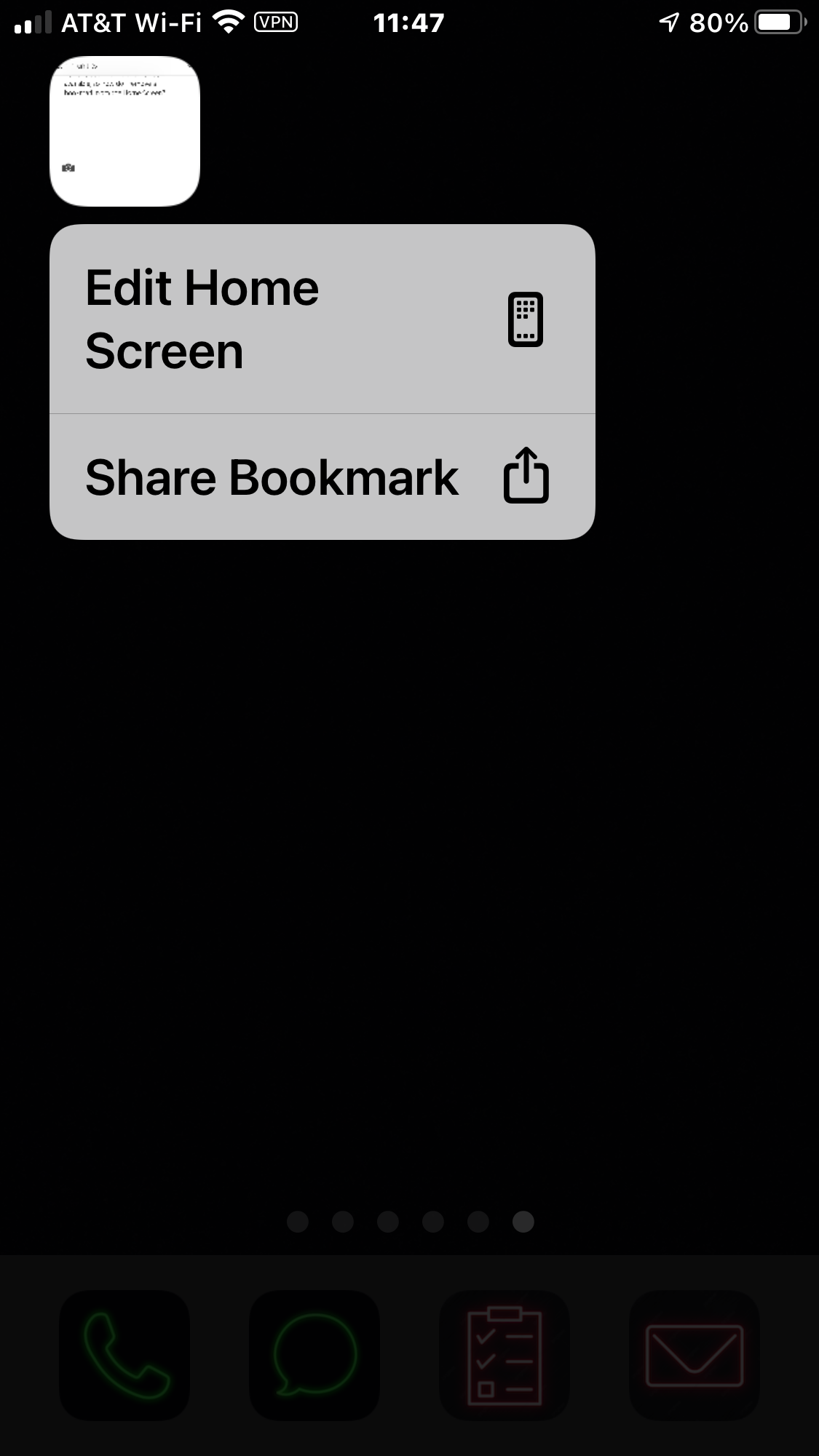 How to remove a Safari bookmark from Home Screen on iOS14?