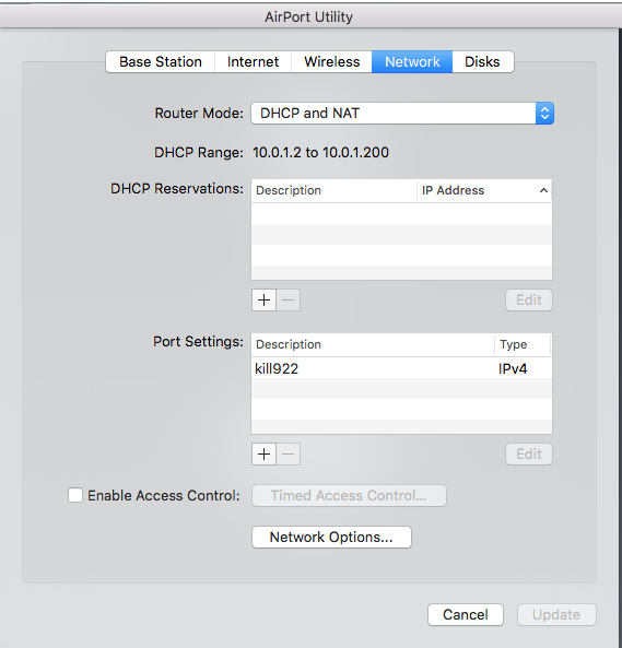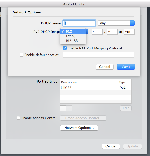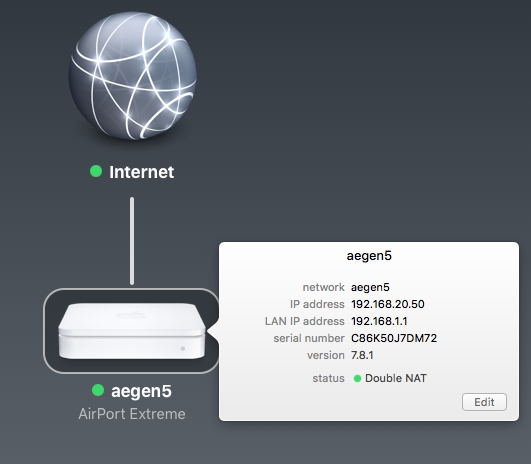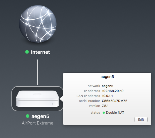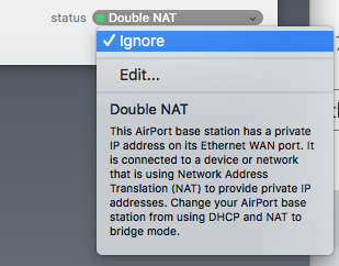 I have an AirPort Extreme (6th gen) I recently plugged back in after realizing the ethernet port in my apartment is live (suffering under MAC address filtered building wireless before that). My wireless network came up fine and I was able to connect on my Macbooks. However, my AirPort Extreme, despite the wireless network seeming to work fine, has been flashing yellow and showing a red update dot in AirPort Utility. Today, I discovered that its router mode was set to DHCP and NAT and it becomes happy again (i.e. AirPort shows green light, no red dot in AirPort utility) if I switch it to Bridge Mode. However, in Bridge Mode, I can no longer connect to my wireless network from my iOS devices, including my iPhone and iPad (Macbooks continue to connect fine). After some research, I discovered that I _can_ connect if I turn off private addresses for my wireless network when connecting from my iPhone or iPad.