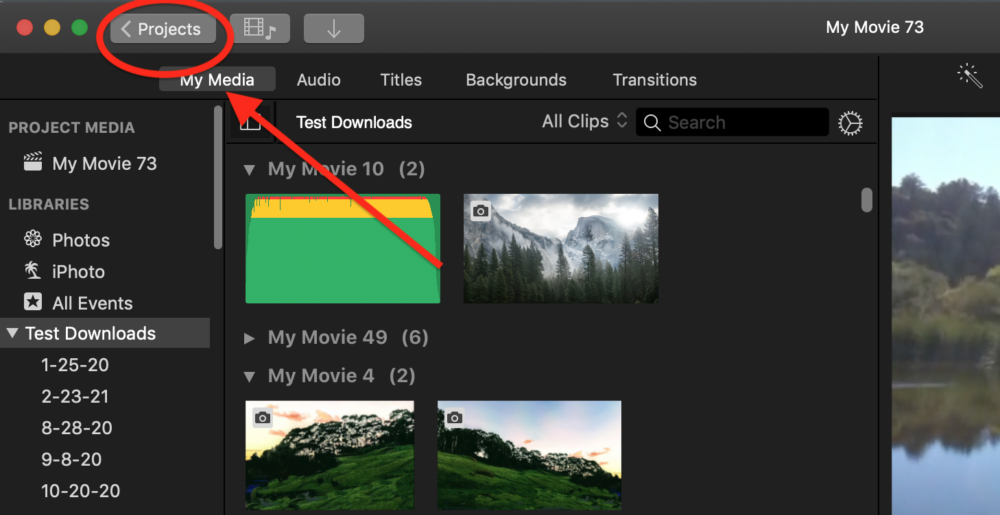 Now that I have accomplished that task, it leads to more questions! Having saved my project now to the "Library", and I now access the project, now saved as, in theory, a movie, when I access it through the "Library, it looks exactly the same as my "project", and you said that I can actually retrieve it and work with it further. Can you refer me to a reference that explains what is going on now, which appears to be soooo different from the way iMovie used to work. I guess I am a "need to know" person, rather than blindly doing. Please excuse my run on sentence there but I had to put all of my thoughts in sequence. I hope you can decipher it!
