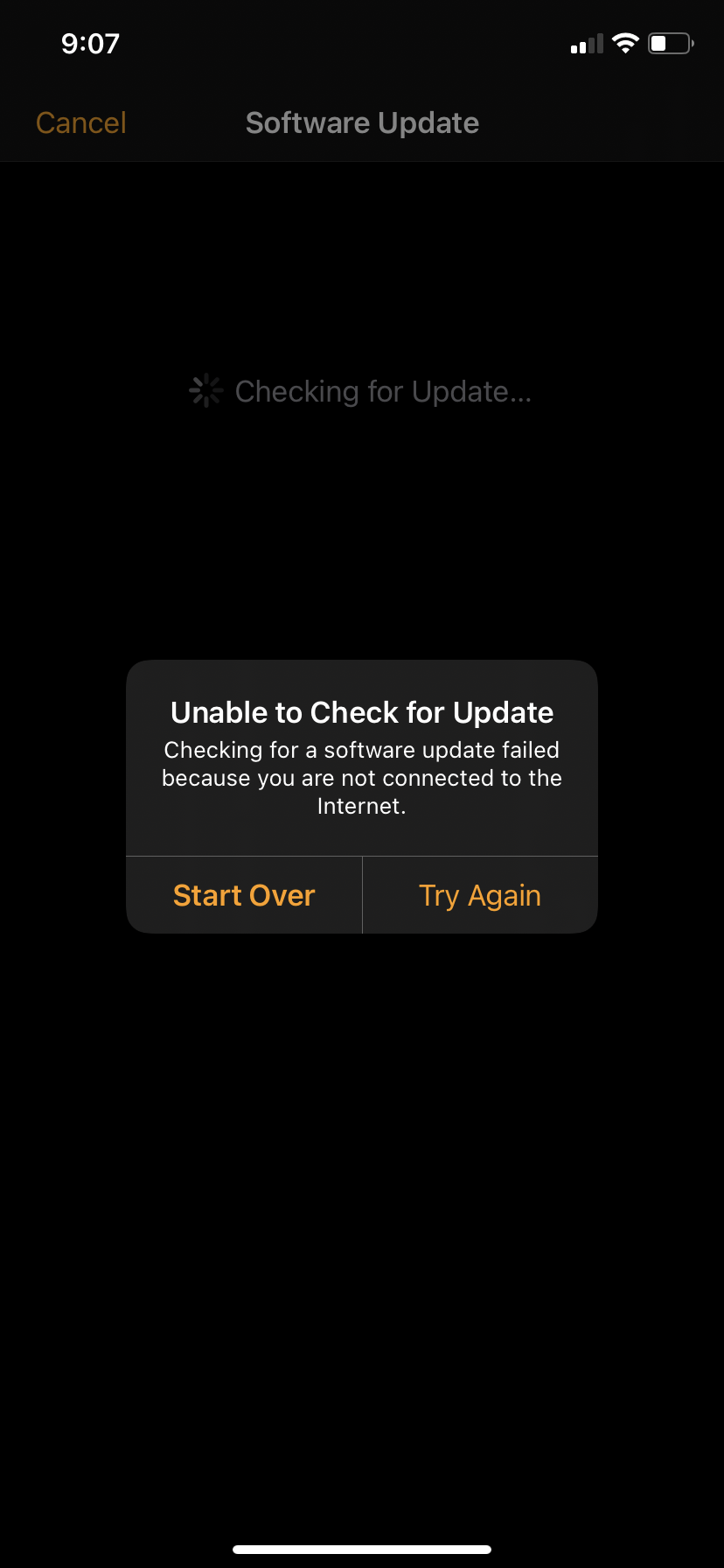 I’m trying to pair my watch and my phone. I am following all the steps but I get an error message that says it couldn’t update the watch because I am not connected to the internet. I am connected to my wifi in my home.