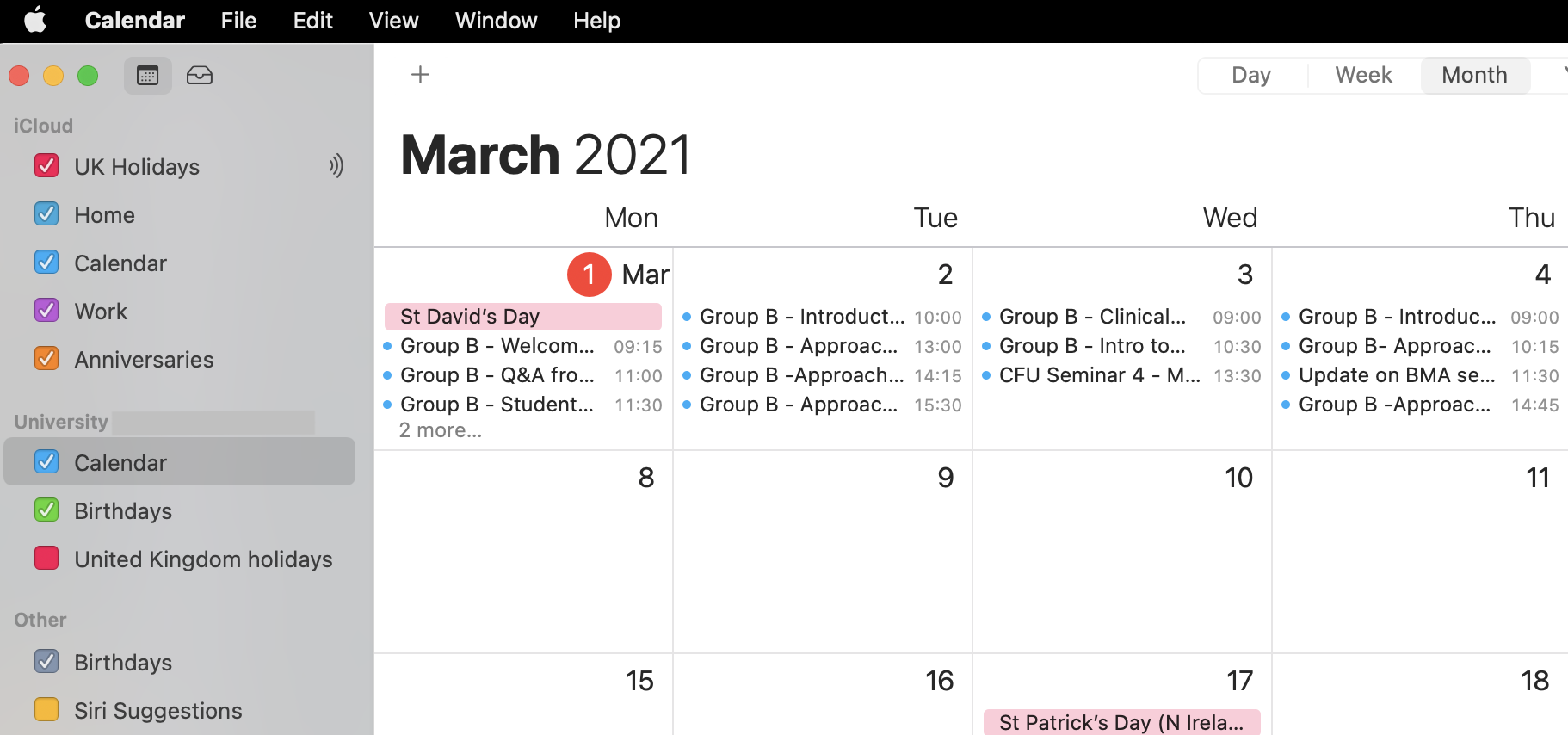 However it is created in the University calendar and it does not get transferred to my iPhone.