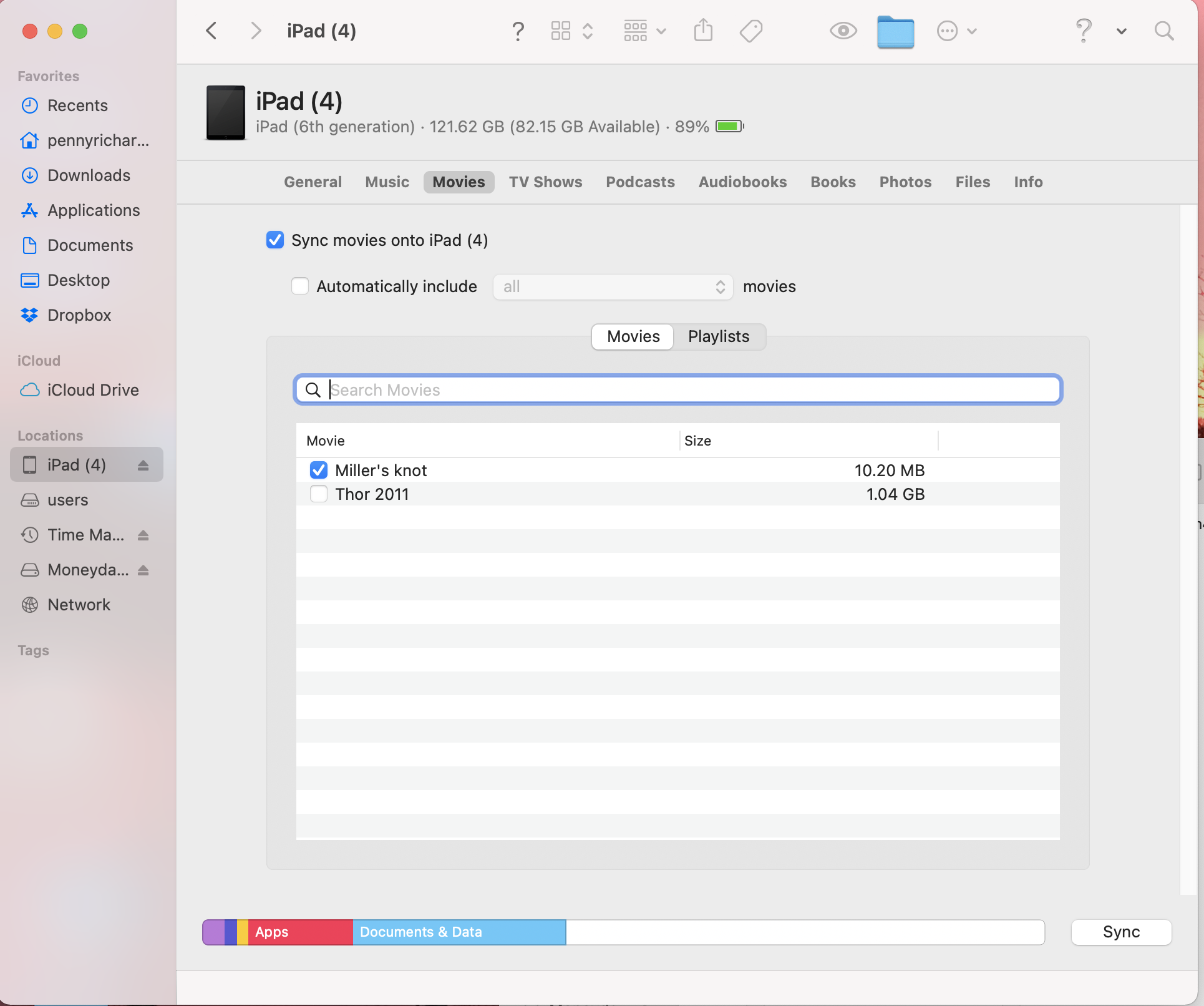 I have some mp4 workout videos on my iMac that i would like on my iPad for travelling. They play on quicktime. When I sync they do not show up anywheres that I can find to add them to my iPad. I have tried adding through iMovies and the iTunes movie file on finder (where millers knot is housed) and they do not show up. How do i make them (or any file) show up on this movie tab. I have black panther and thor on my desktop and only thor showing up there. This should not be this hard. Any suggestions?