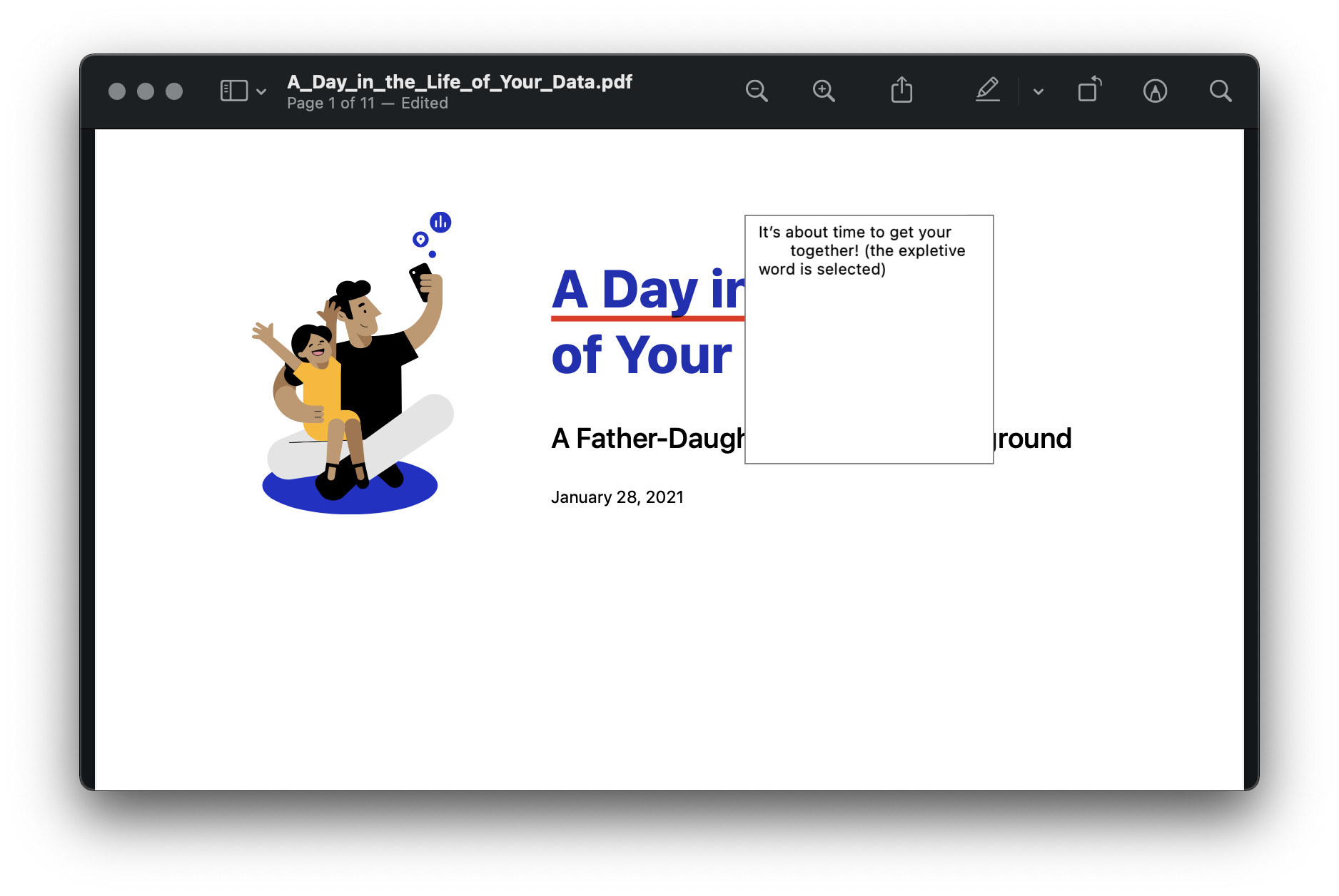 With dark mode enabled (on macOS Big Sur 11.2.2 (20D80)), some editing/creating PDF annotations in Preview.app is difficult. When underlining words in a PDF and adding a note, the background of the note is white. The text cursor and any text selections are also white, making it very difficult to use in Dark Mode. Is there at least a way to change the background of the note? The same problem arises when adding text annotations to any kind of file with a white background.
