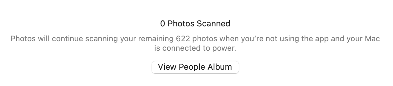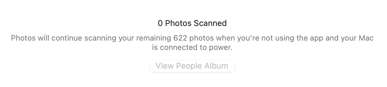Then I enabled iCloud photos also in an iPad Pro and there those iCloud photos were readily scanned for faces. Then those faces were synced to the Mac's People > View People Album. But the Mac never started to scan the faces itself:
