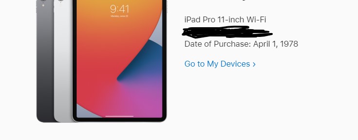 My iPad when check on apple support said Purchase Date: April 1, 1978