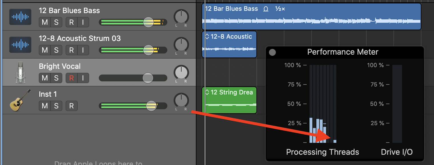 Logic cannot spread a load of all the Plugins on a single Track over multiple cores.