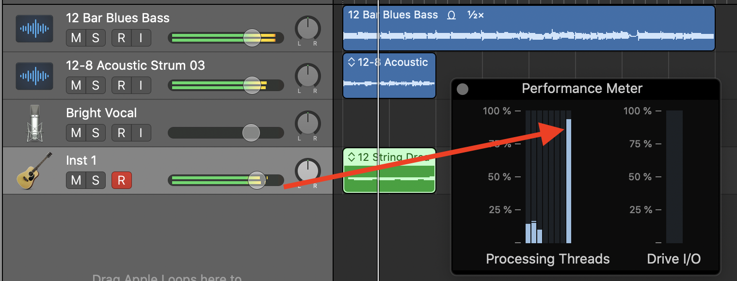 And here is the same situation where that Instrument Track is not selected (same amount of Plugins on that Track)