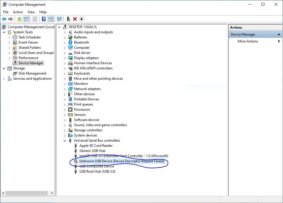 Cannot restore iPhone 5S, error unknown usb device (device descriptor request failed)