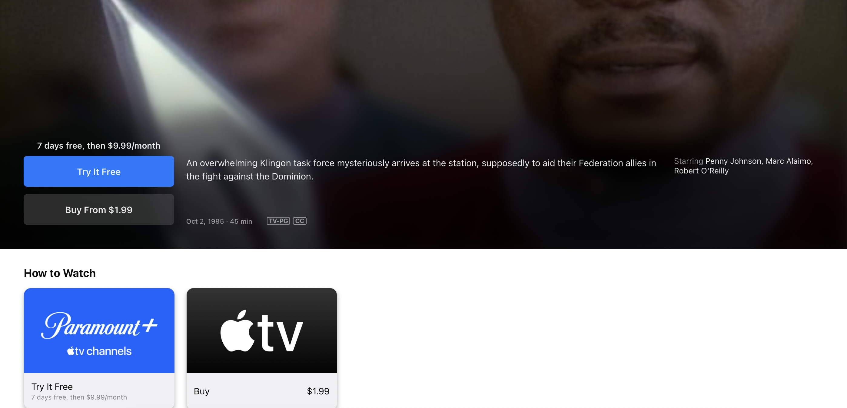 However, looking at Episode 2 of "Way of the Warrior" it does not offer the option to watch in Paramount Plus if its accessed through the iTunes Store. It in fact only shows the TV option which is of course not part of Paramount Plus.