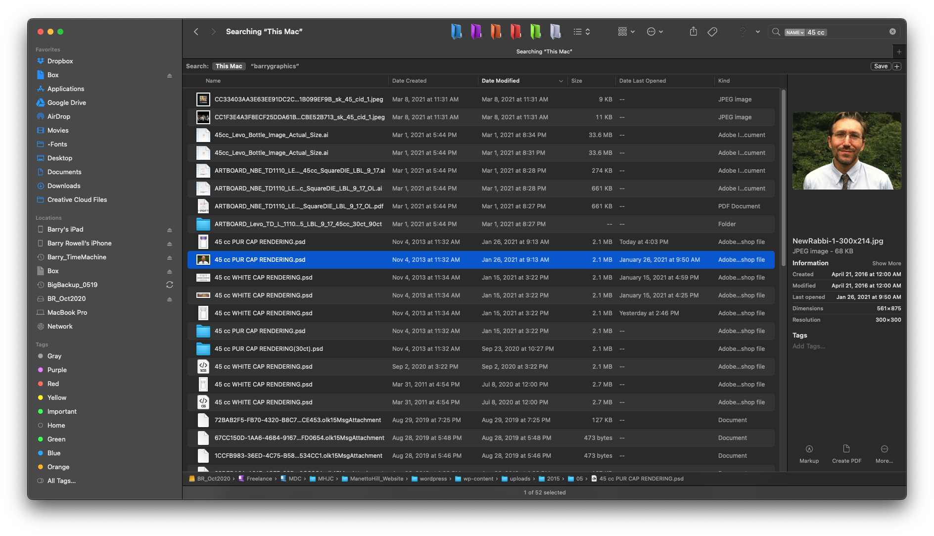 I have searched and I must be using the wrong words to describe this because I can't find any answers or anyone else having this problem. When I type in a search for any file name, I get a list of files that have that name (or include it if I used part of the file name) but they are NOT the file; in fact, they are always nothing at all like the file I'm searching (if it's a JPG in one client folder, the result often shows ancillary web files in another client's folder). Search is literally useless and I need to be able to search my computer for files as I continually return to documents from previous years.