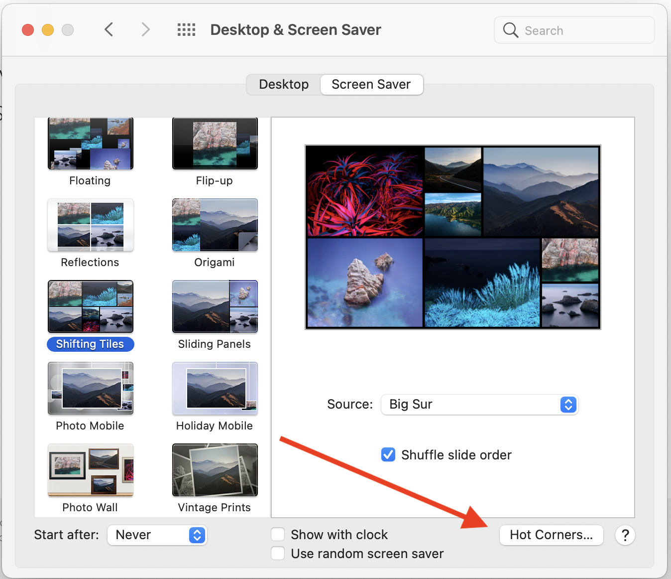 How do I stop my screen from shrinking when I move the cursor to the top left corner next to the apple