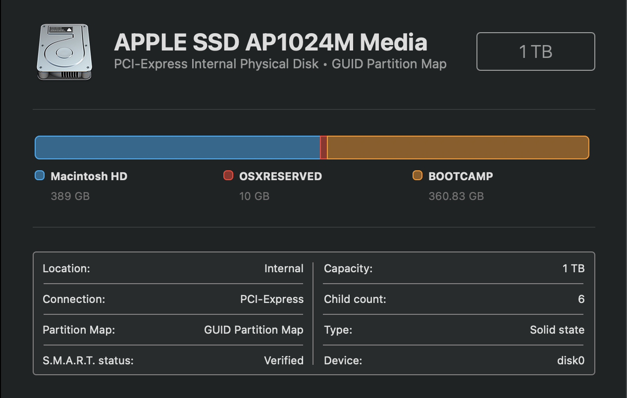 2: Apple_APFS Container disk1 389.0 GB disk0s2