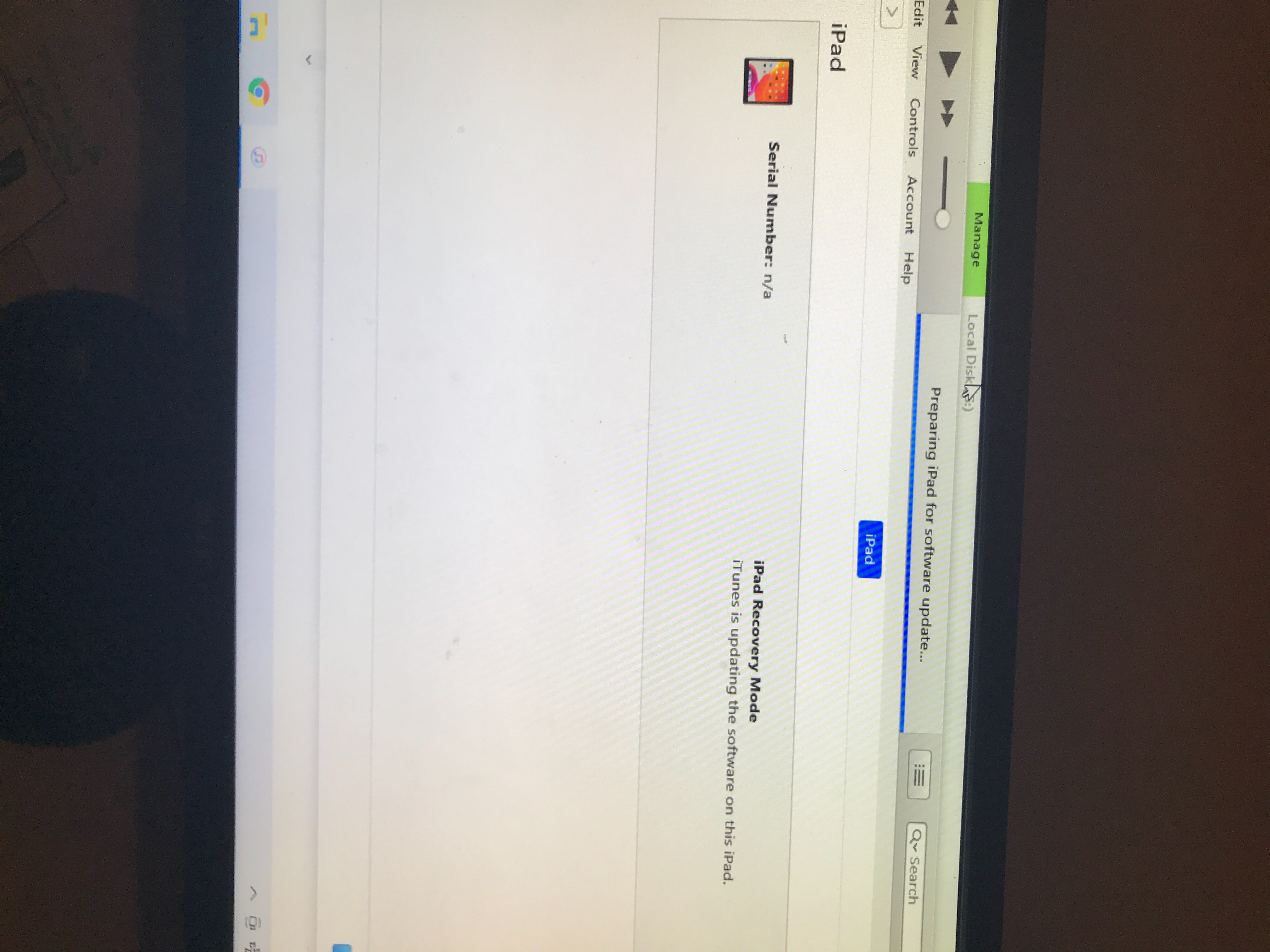 I’ve connected my iPad to iTunes and began updating it. But I have become stuck on a screen saying “preparing iPad for software update” how do I fix this