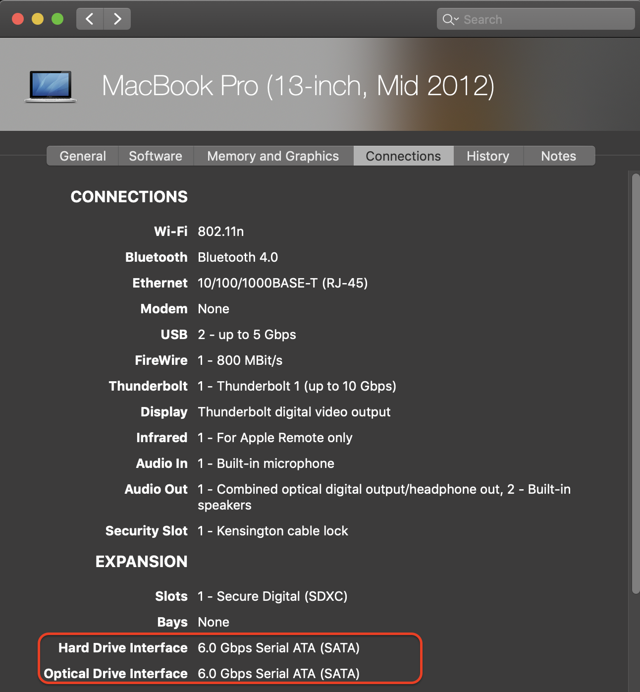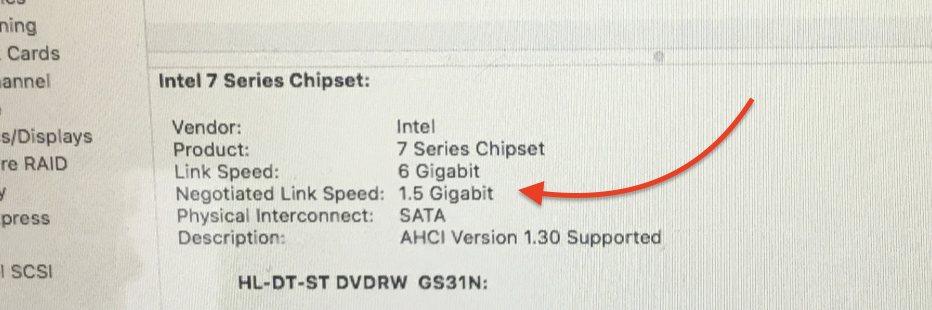 OWC says that the Apple factory hardware does not reliably support a 6G (6Gb/s) Solid State Drive or Hard Disk Drive in the optical bay of 2011 and 2012 MacBook Pros, The optical bay interface may either be SATA Revision 2.0 3Gb/s (300MB/s max) OR SATA Revision 3.0 6Gb/s. There is no way to specify/order this data interface with Apple, but you can confirm what interface version your optical bay offers by using 'About this Mac, More Info, Serial-ATA' info display.