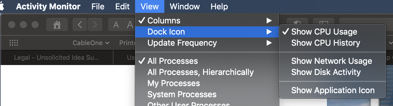 How to show CPU Usage in Mojave 10.14.6, verticle green bars