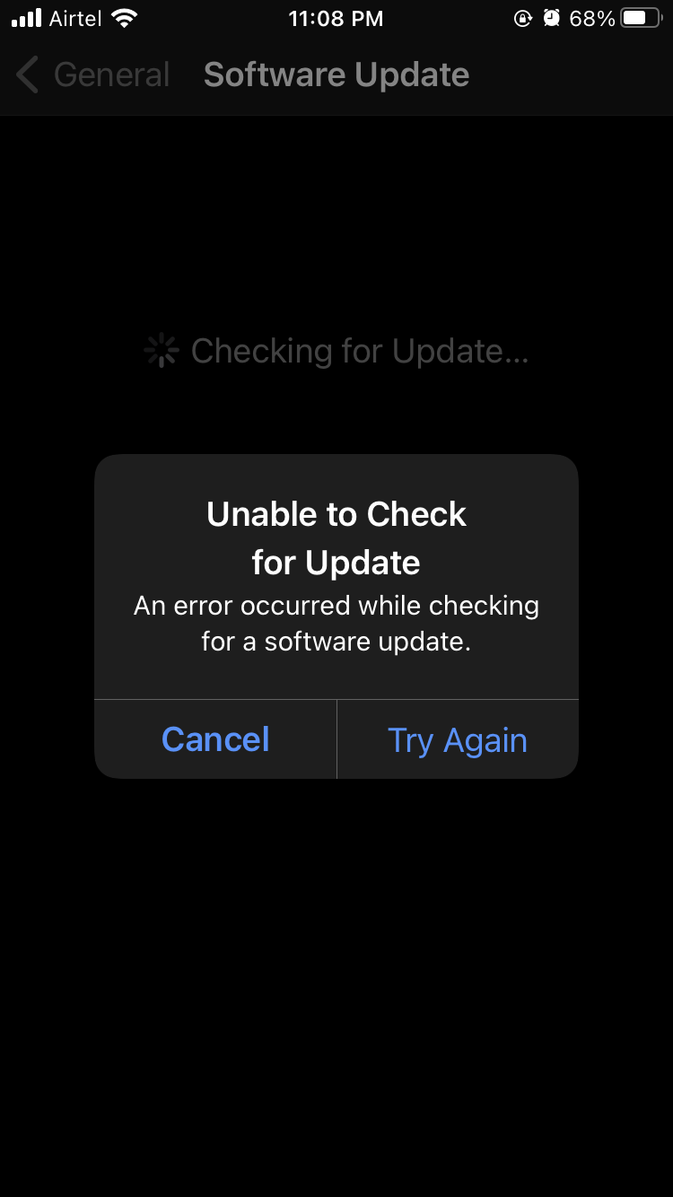 I’ve good connection but when I tap on software update section it says can’t connect or something like that n try again
