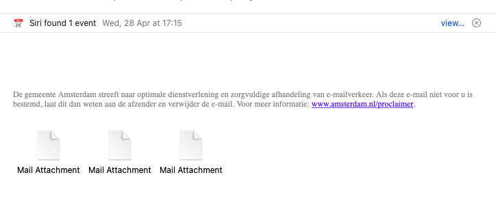 The three files do not open nor show properly as attachments. Only after I save them I can do Get Info. They are saved as Mail Attachment.ics and Mail Attachment.eml (twice). But in the mail message they appear broken.
