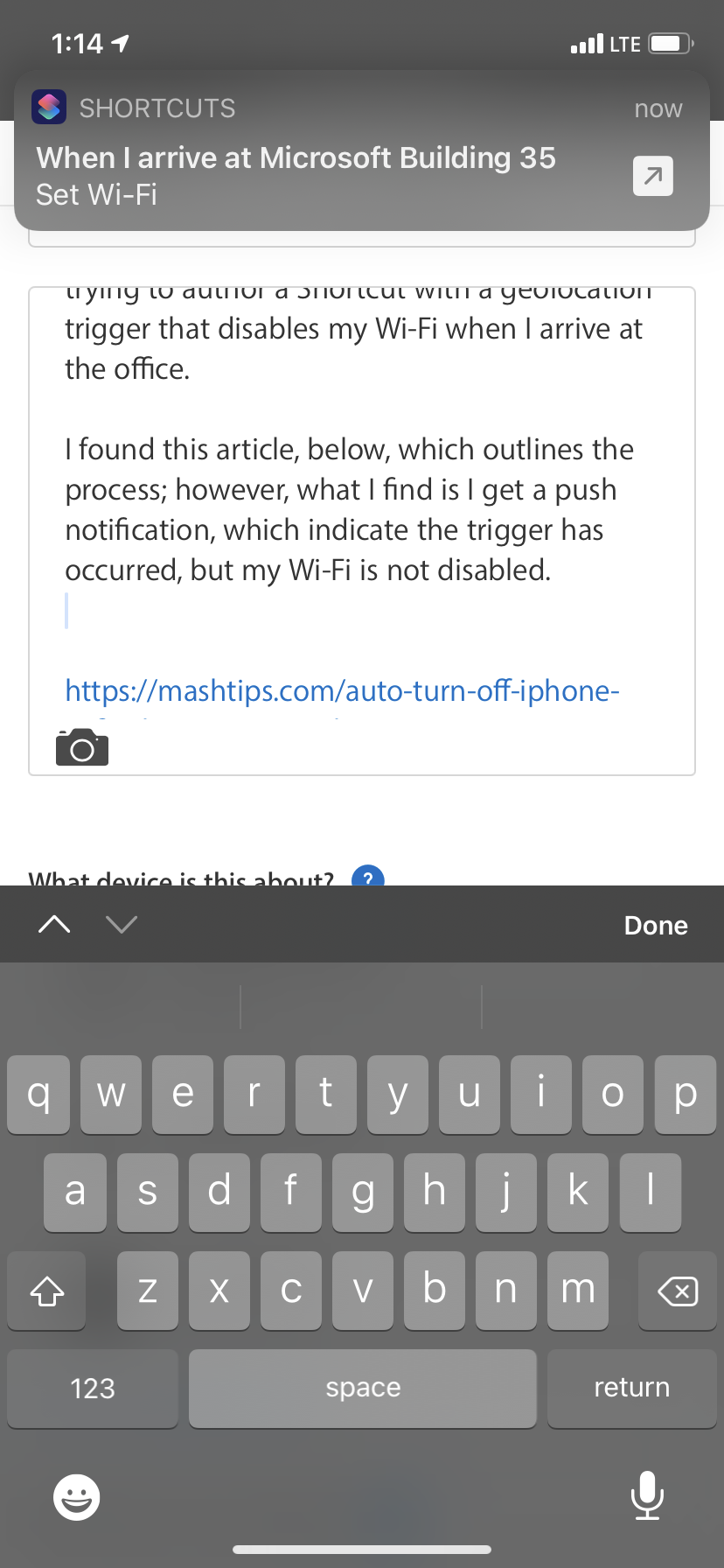 I’m running the latest iOS 14 and have been trying to author a Shortcut with a geolocation trigger that disables my Wi-Fi when I arrive at the office.