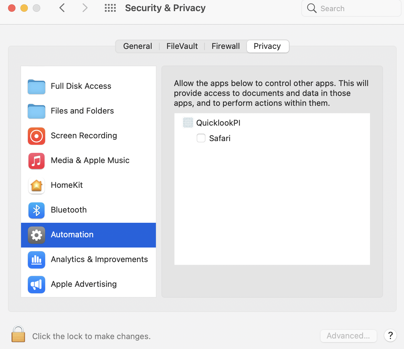 So I found out about "QuickLookPI" adware and disabled it from controlling Safari as my first step. Now I deleted the file but figured out that I could not remove it from System Preferences > Security and Privacy directly, if any of you have ideas on how to remove the application from the Automations list, please reply. Thanks!