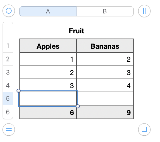 Numbers has automatically changed the formula from Fruit::A$5 to Fruit::A$6