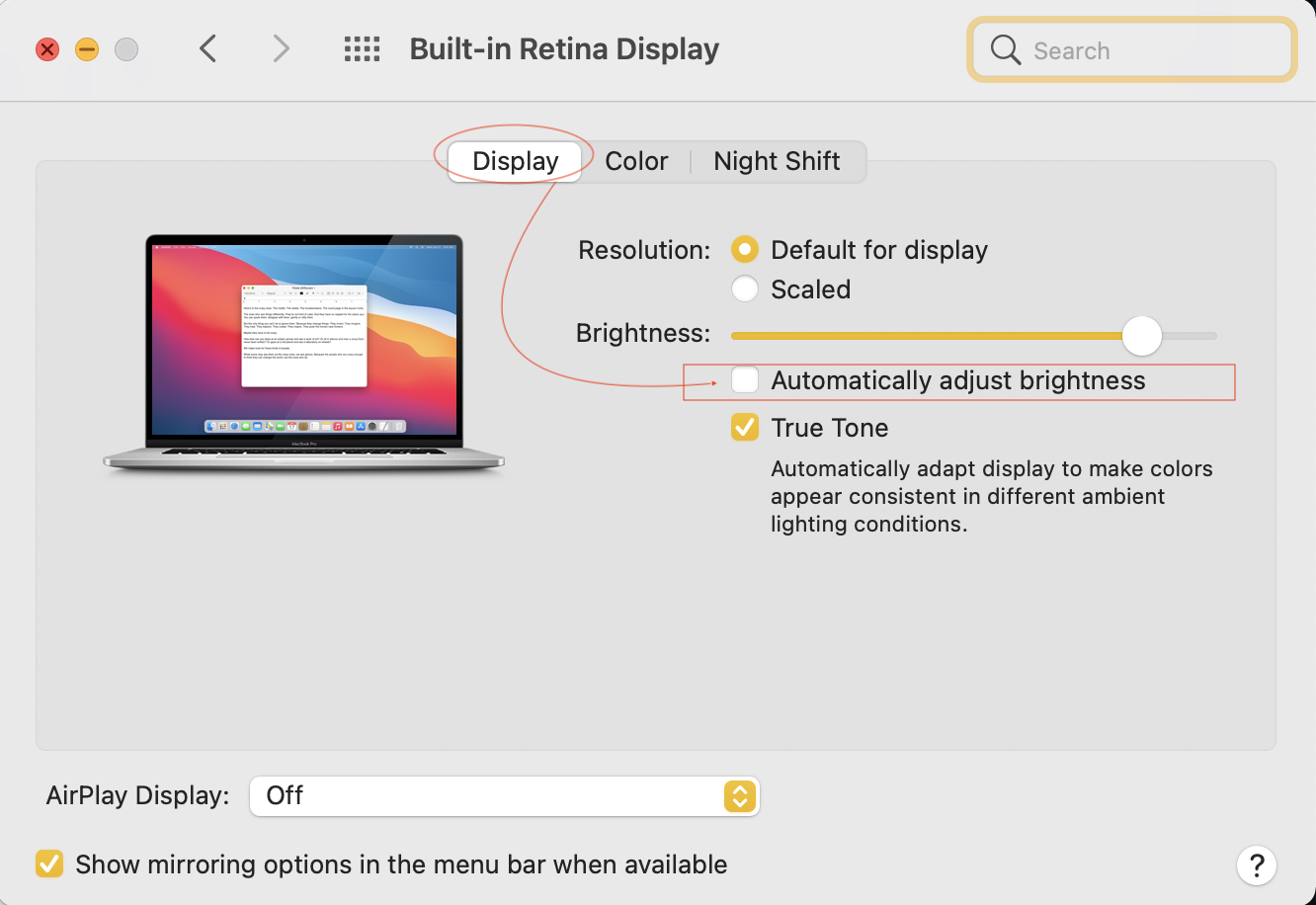 I have purchased Macbook pro M1 and occasionally (once a few days) having issues with light sensor so that in relatively bright and sunny room the brightness level of the screen suddenly goes from 80% down to 5% or so I can barely see anything.