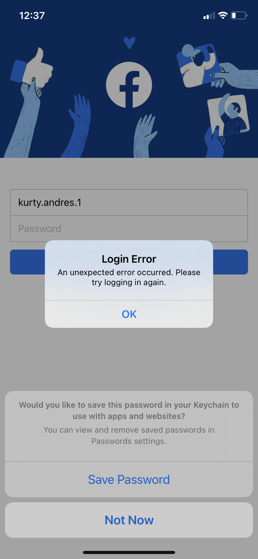 I cant login to my facabook account on facebook app they send me a massage an unexpected error occurred