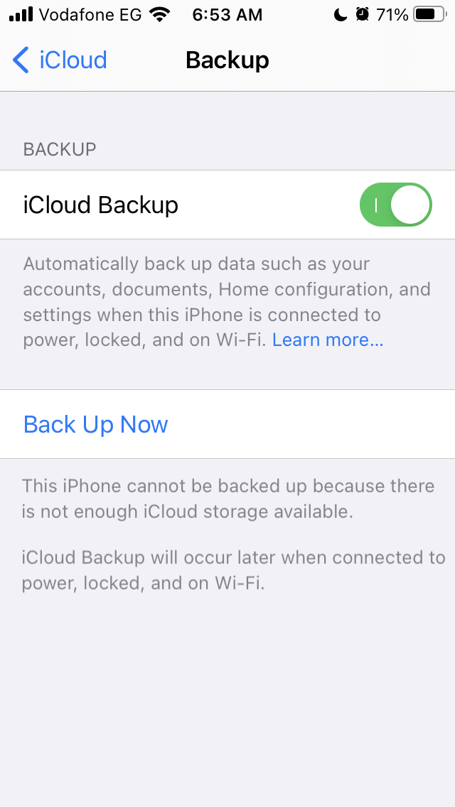 My icloud backup is not working