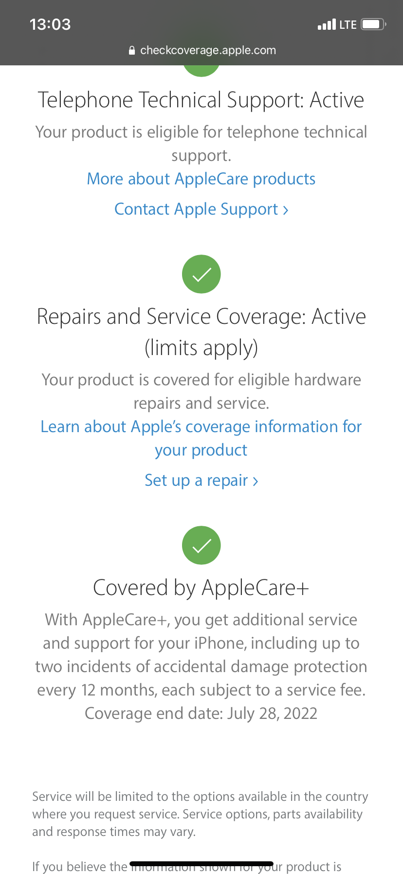 Hi I purchased my IPhone 12pro in Dec. i bought the phone in Dec but didn’t arrive until February. They said that I have a year free of AppleCare. I wanted to verify this and/or pay for additional AppleCare. I tried the check Apple care address but it didn’t give me an answer or anything for that matter when I put in my Serial Number. Can you possibly confirm whether or not I am covered? And let me know how I can purchase AppleCare for my phone?