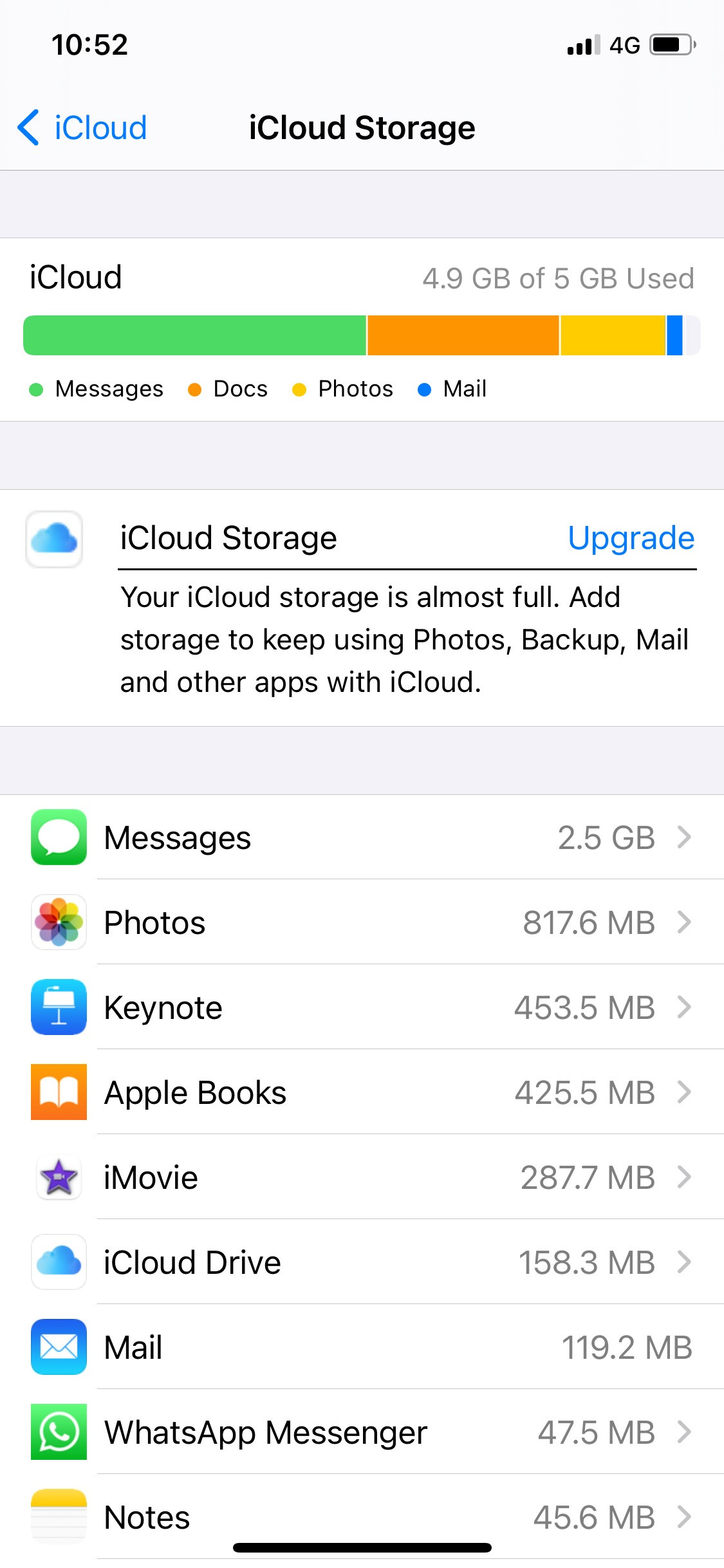 My free iCloud storage is showing as nearly full, but it is not clear why.