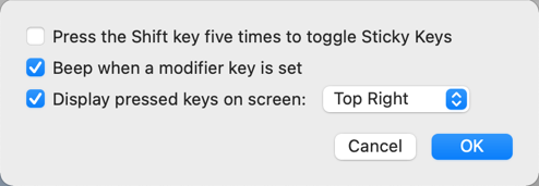 The only problem is.. when I enable sticky keys and go out of the preferences and go back in, it's showing as not enabled.. So I can't try this fix.