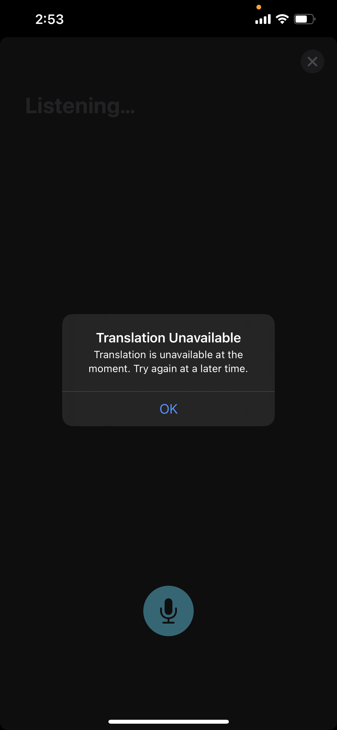 Hi, I’ve got my iPhone 12 pro max in China, and the translator doesn’t work very often. I use VPN, but even without VPN it doesn’t work. It says translation is available at that moment. I downloaded the languages I needed, but the problem is not gone