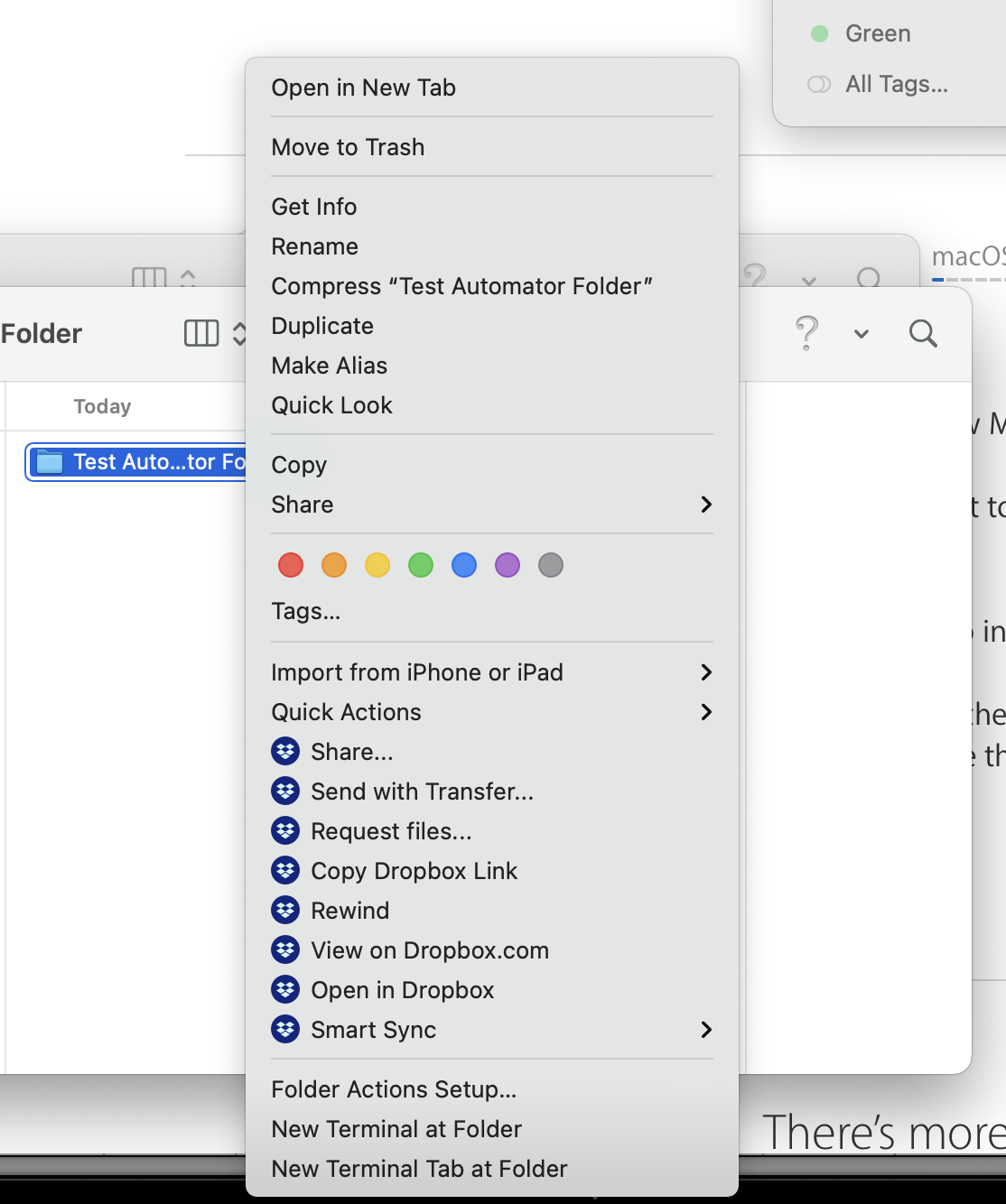 I have put together an Automator Quick Action that assumes that before the Quick Action is invoked from the Services menu, or the Finder Quick Actions menu, that you have copied that Dropbox folder link to the clipboard. Then you select the folder and run the Quick Action.