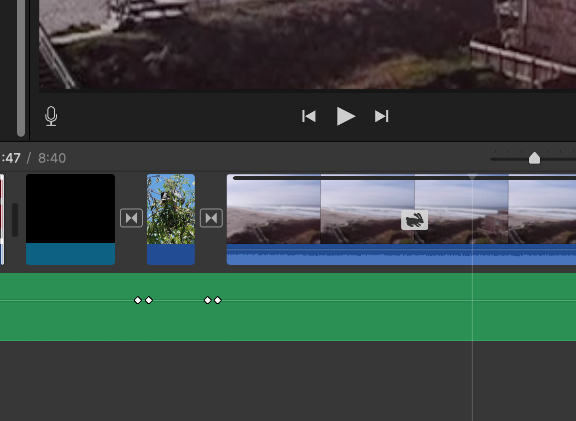 Here is the printscr. I have two seperete cuts and need to put transition in between them, but there is a sound left from the first one and I dont know how to mute it. Thanks a lot.