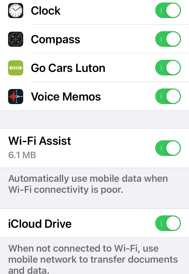 Or go through the list of apps in those settings and turn them off. Also turn off Wifi Assist at the bottom and any other function of choice