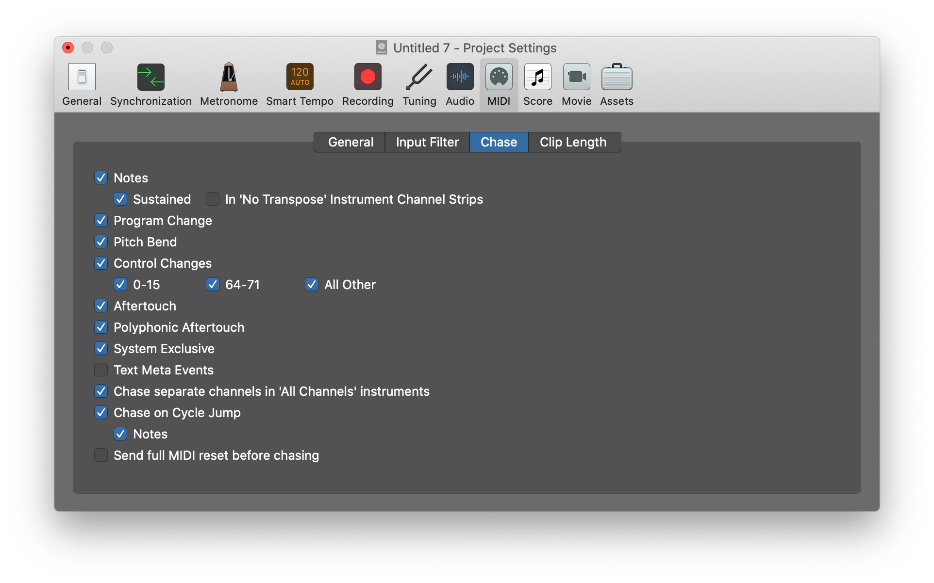 It's not a midi chase issue. Not recording at the first bar.