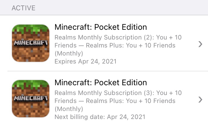 But my Apple subscriptions don’t show the realm name I have given to the worlds, so ...