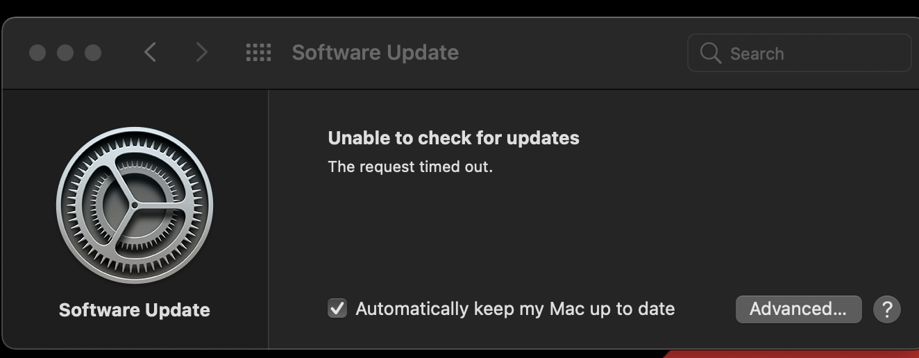 I've the lates OS update installed on my Mac (macOS Big Sur 11.2.3) but when I check if there's a software update available it shows the error message attached. Rebooting didn't solved the problem! Any advise? Thanks.