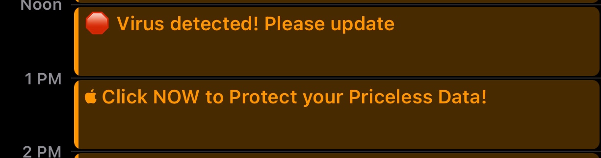 I installed MCAFEE and Norton 360 premium and they didn’t find any issues but I’m still have event in my calendar that is saying “virus detected” and “your phone locked in 18 hours” and also it showing me a link that I opened with vpn and it was directing me to a an security app on App Store. Should be it’s just advertising?