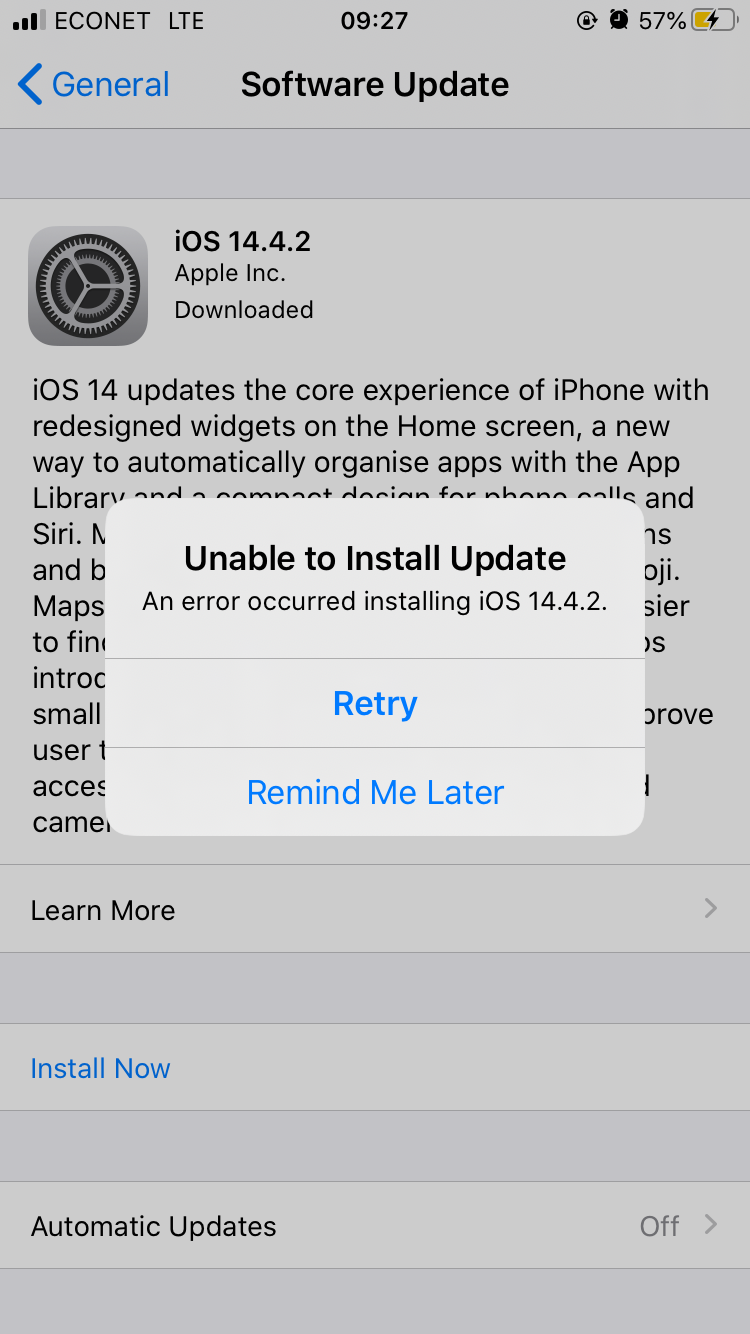 i cnt update my 6s to ios 14 , ts sayin an error occurred wen i’m abt to verify the download update any help?