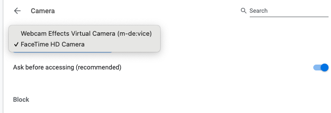 how do I remove webcam effects virtual camera from Chrome, MacBook Pro M1 Chip