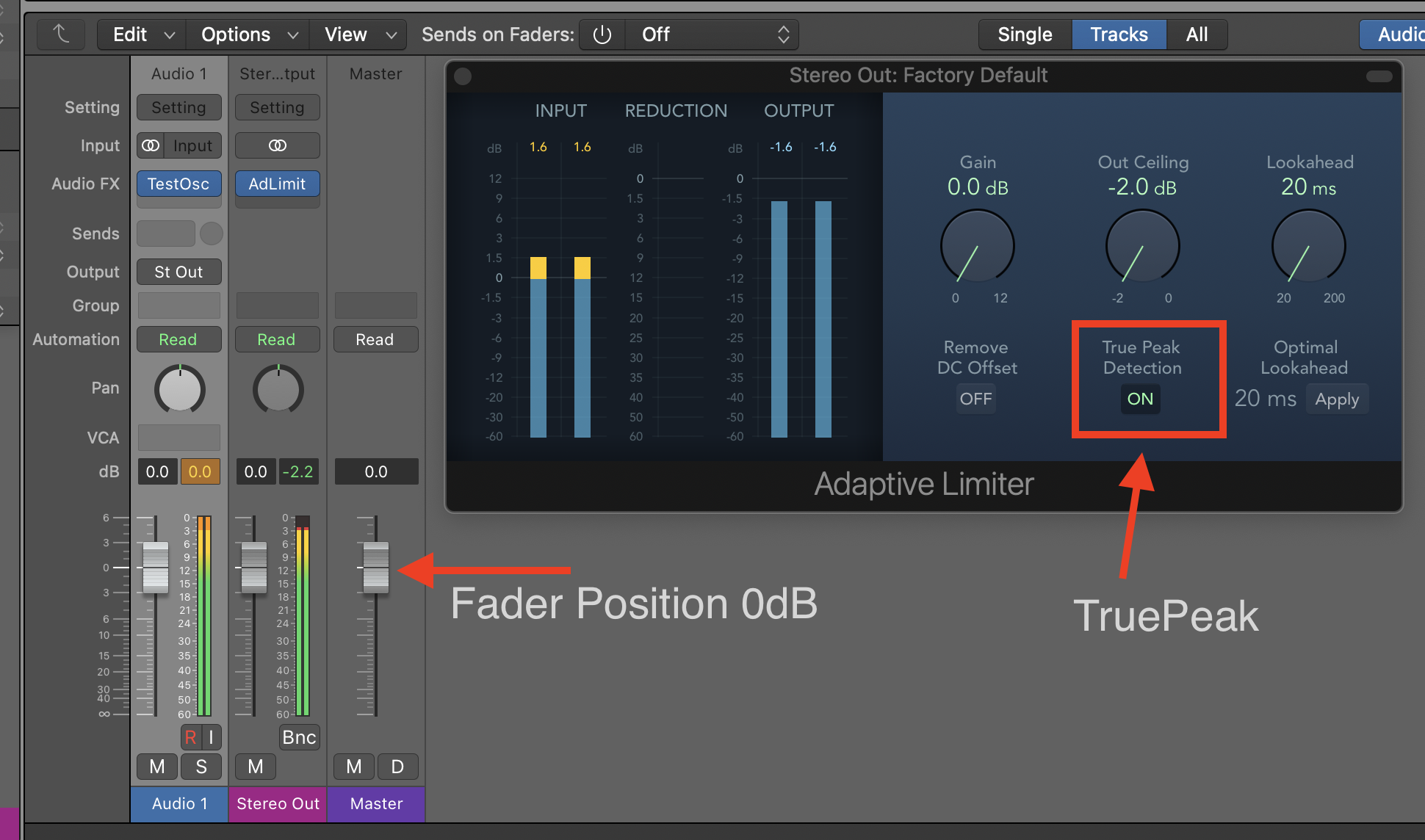 And as he said, don't touch the Master Channel Strip. It should always be at 0dB (unless you know exactly its purpose and know what to do with it).