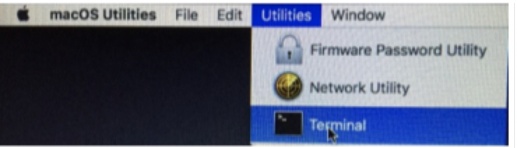 Move the mouse pointer to the menubar at the very top of the screen, click "Utilities” and then select "Terminal"