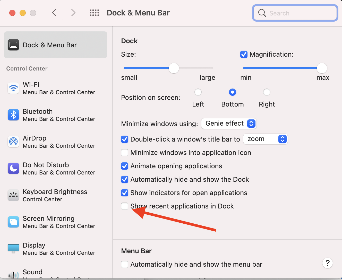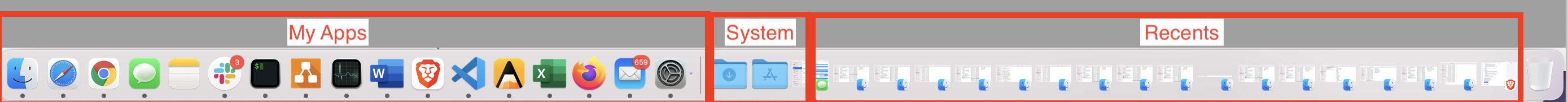 In Settings, Dock & Menu Bar, I have the "Show recent applications in Dock" unchecked, but it still shows a LOT of recent apps. In my Dock, I have the apps I have open or pinned to the Dock, then my Downloads and Application folder, then over 30 recent apps, followed by the trash. It really clutters my dock and I'd really like to get rid of all the recent apps. Apple support was very nice, they couldn't find any issues so they asked me to upgrade from 11.2.1 to 11.2.3 but that didn't resolve it.