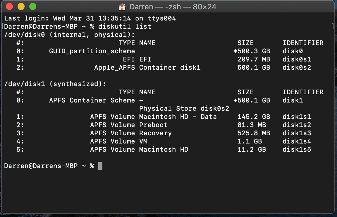 Darren@Darrens-MBP ~ % diskutil list