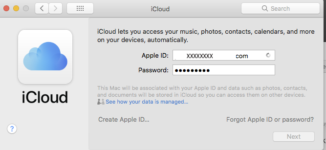 Hi, I don't have a window like that on this computer. It won't see my iCloud account at all except if I go to internet accounts in system preferences. it shows Game Center under my ID. My account seems to be gone and won't let me start it up as it won't accept my password. Remember I'm running OS 10.13.6