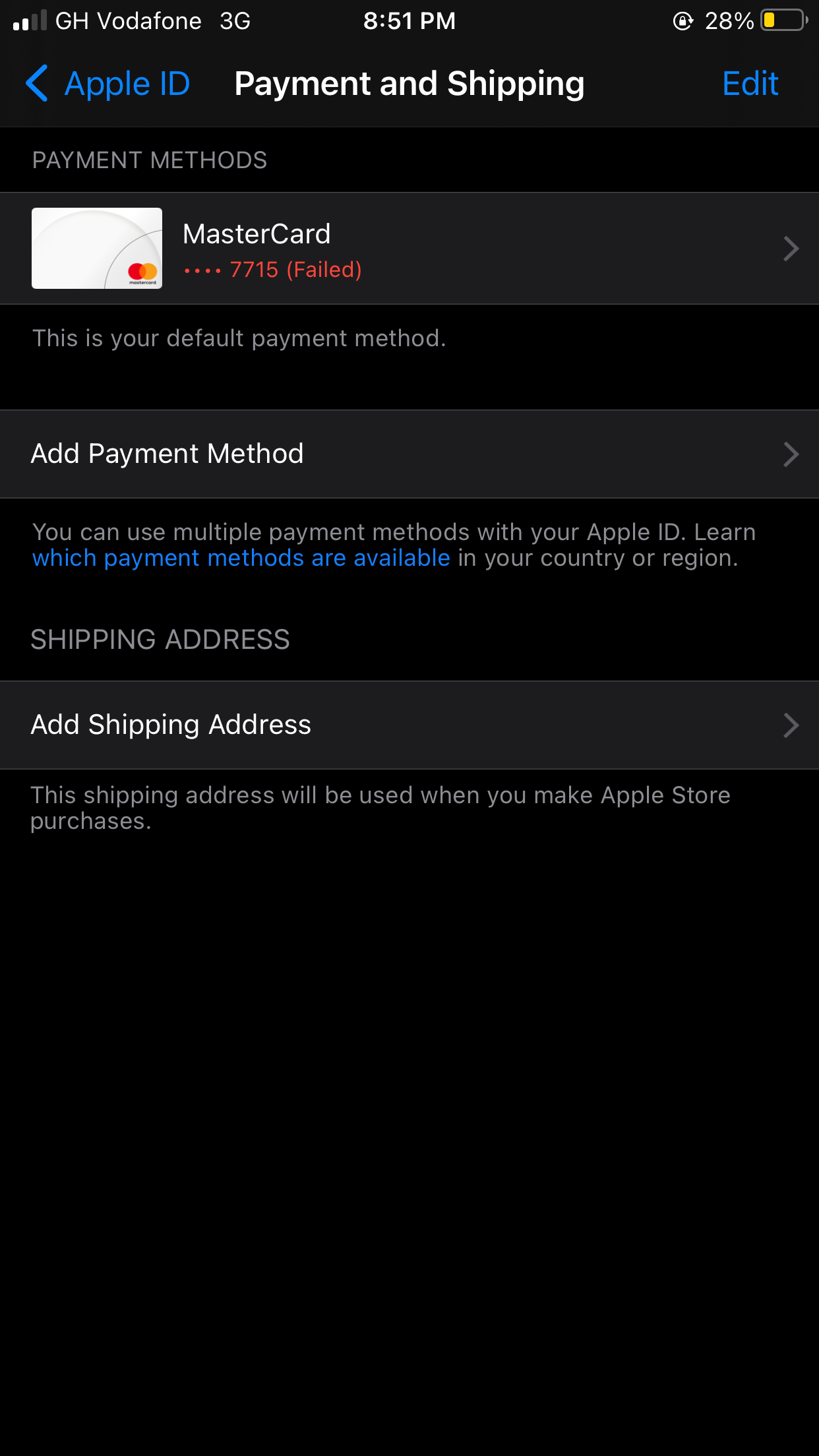 Please I have my master card which was my payment method until one day when I went to the payment side it said. Failed.