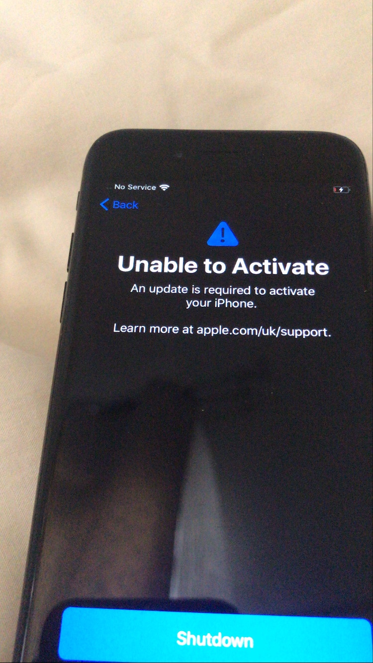 It says unable to activate and shutdown but when I shutdown it keeps on saying the same thing