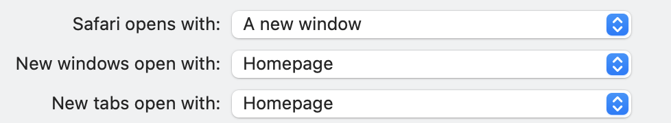 Under "General" you can customise Safari to suit.