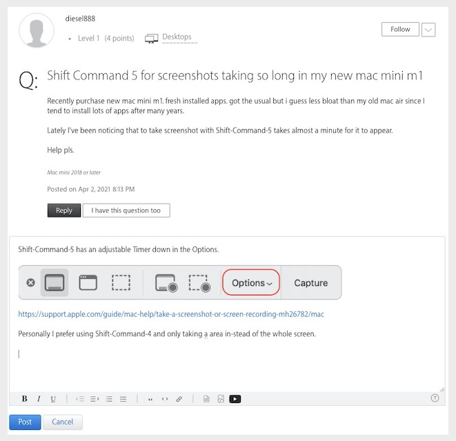 Shift Command 5 for screenshots taking so long in my new mac mini m1